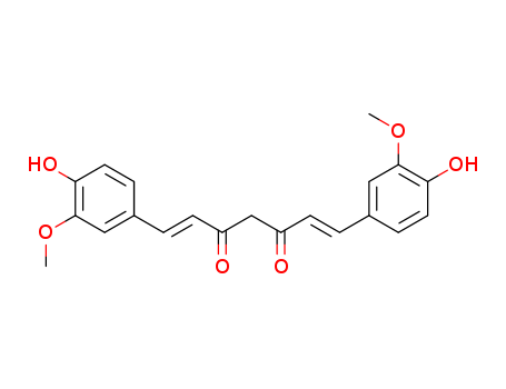 The chemical formula of Curcumin is C21H20O6 which containing 21 Carbon atoms,20 Hydrogen atoms and 6 Oxygen atoms,and the molecular weight of Curcumin is 368.386.